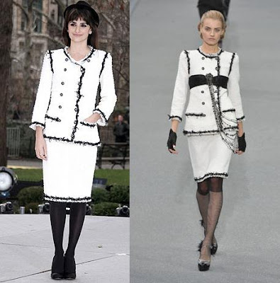 Aquí la tenemos con un traje Chanel , que no es broma.